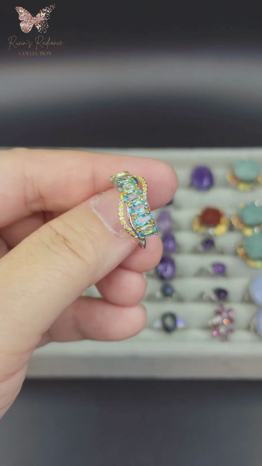 Natural Blue Topaz Adjustable Ring | Silver-Plated Crystal Jewelry | Cincin Topaz Biru Semula Jadi Boleh Laras | Barang Kemas Elegan