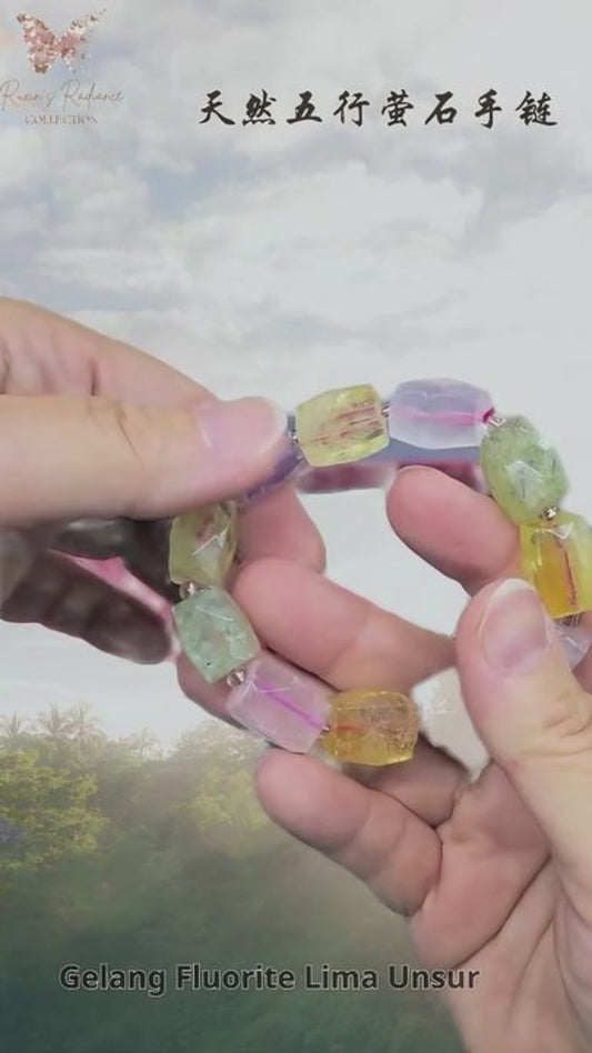 Natural Fluorite 5-Element Crystal Bracelet | Multicolor Healing Stones for Focus, Balance Energy, Wealth & Protection | Handmade Elastic Fit · Ideal Gift for Students & Adults | Gelang Kristal Fluorite 5 Unsur
