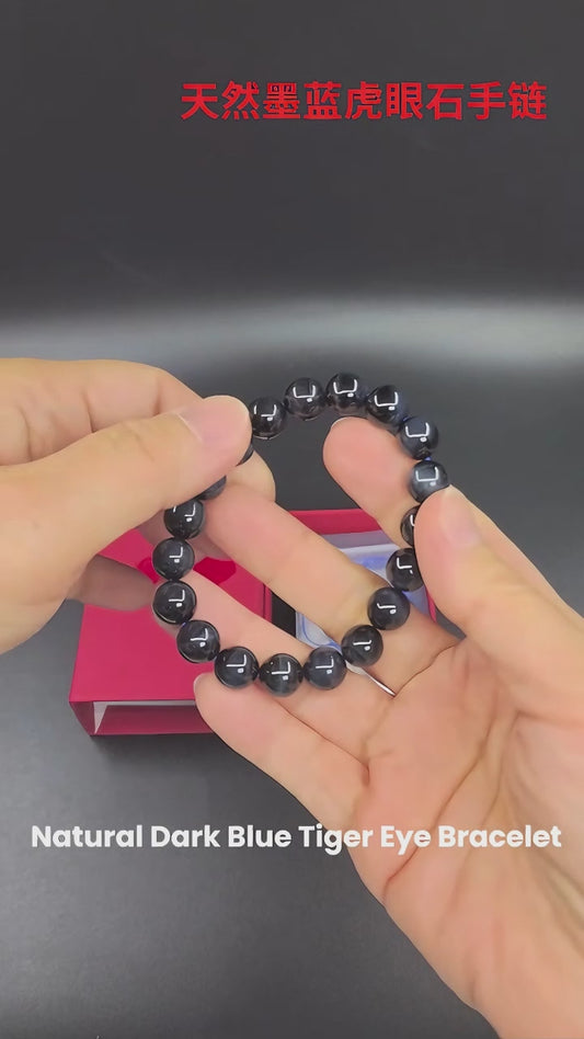 Natural Dark Blue Tiger Eye Bracelet | Gelang Tiger Eye Biru Gelap Asli – Protection, Focus & Calm|Perlindungan, Fokus & Ketenangan|Premium Authentic Crystal