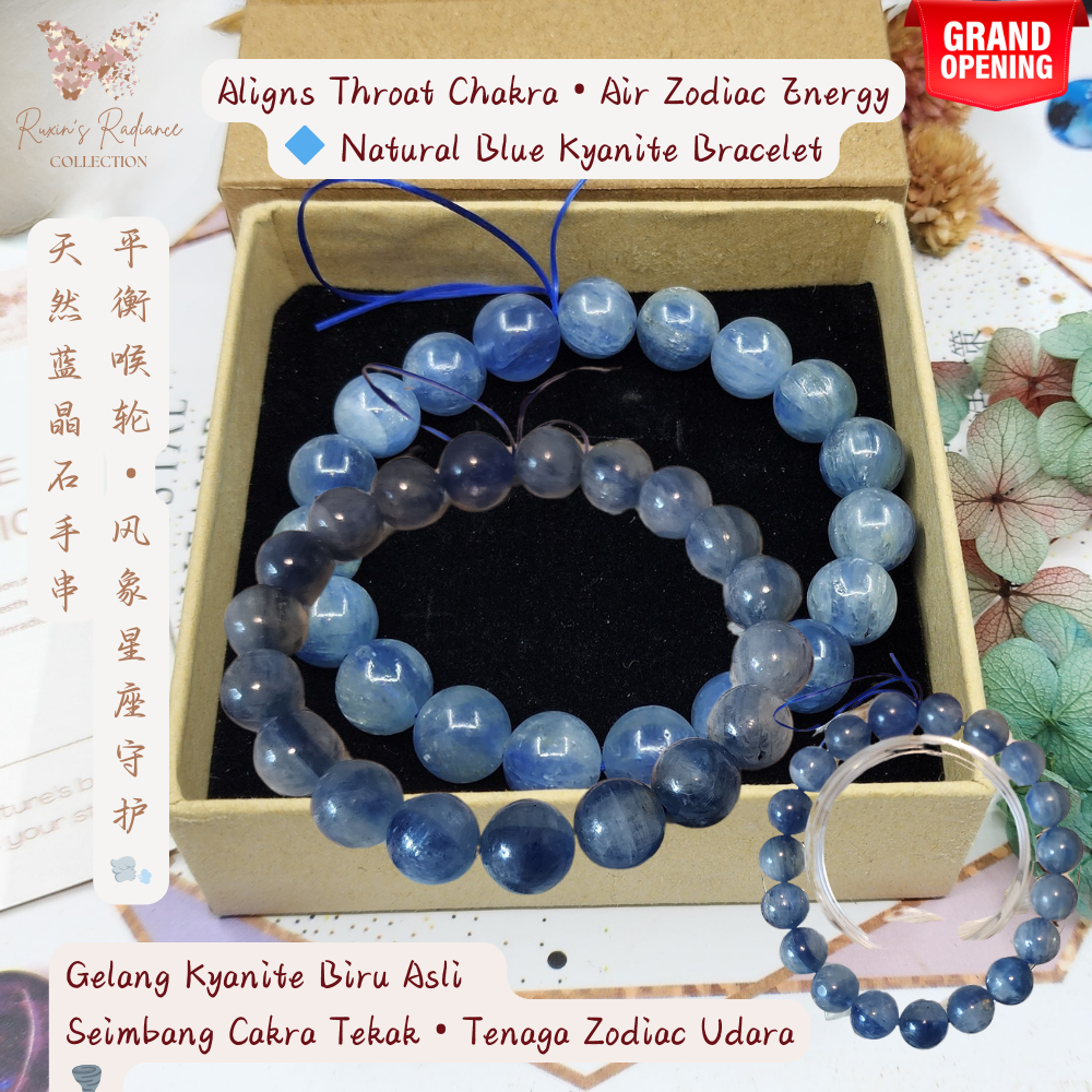 🌬️ Ruxin Radiance Handmade Natural Kyanite Bracelet-Throat Chakra/Clarity【天然蓝晶石】喉轮·思维·风象️Gelang Kyanite-Cakra Tekak/Fokus | Zodiac Udara