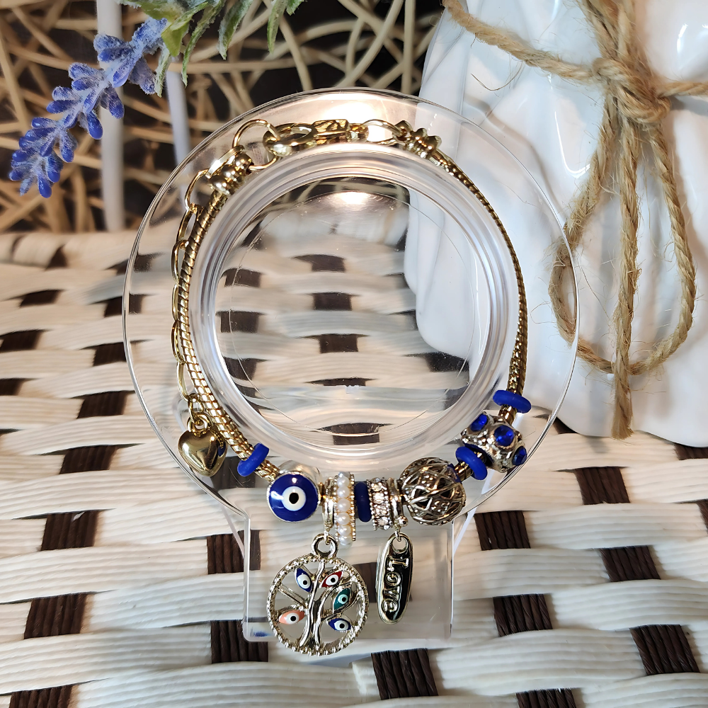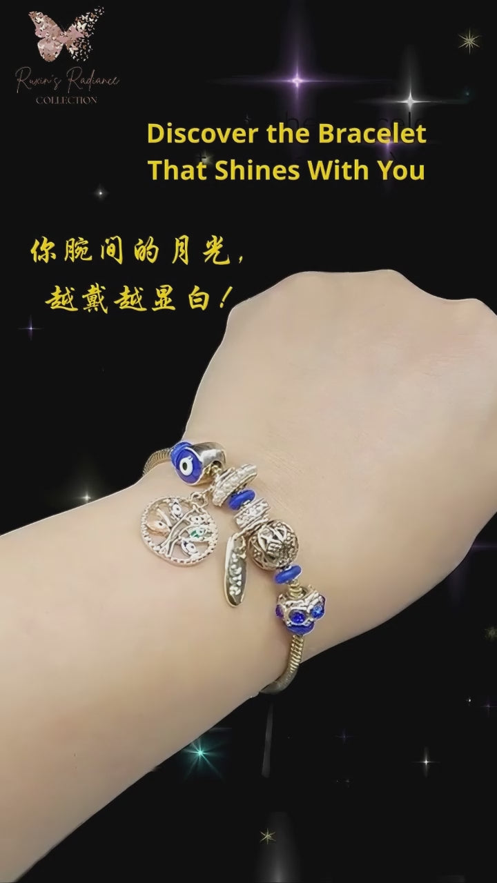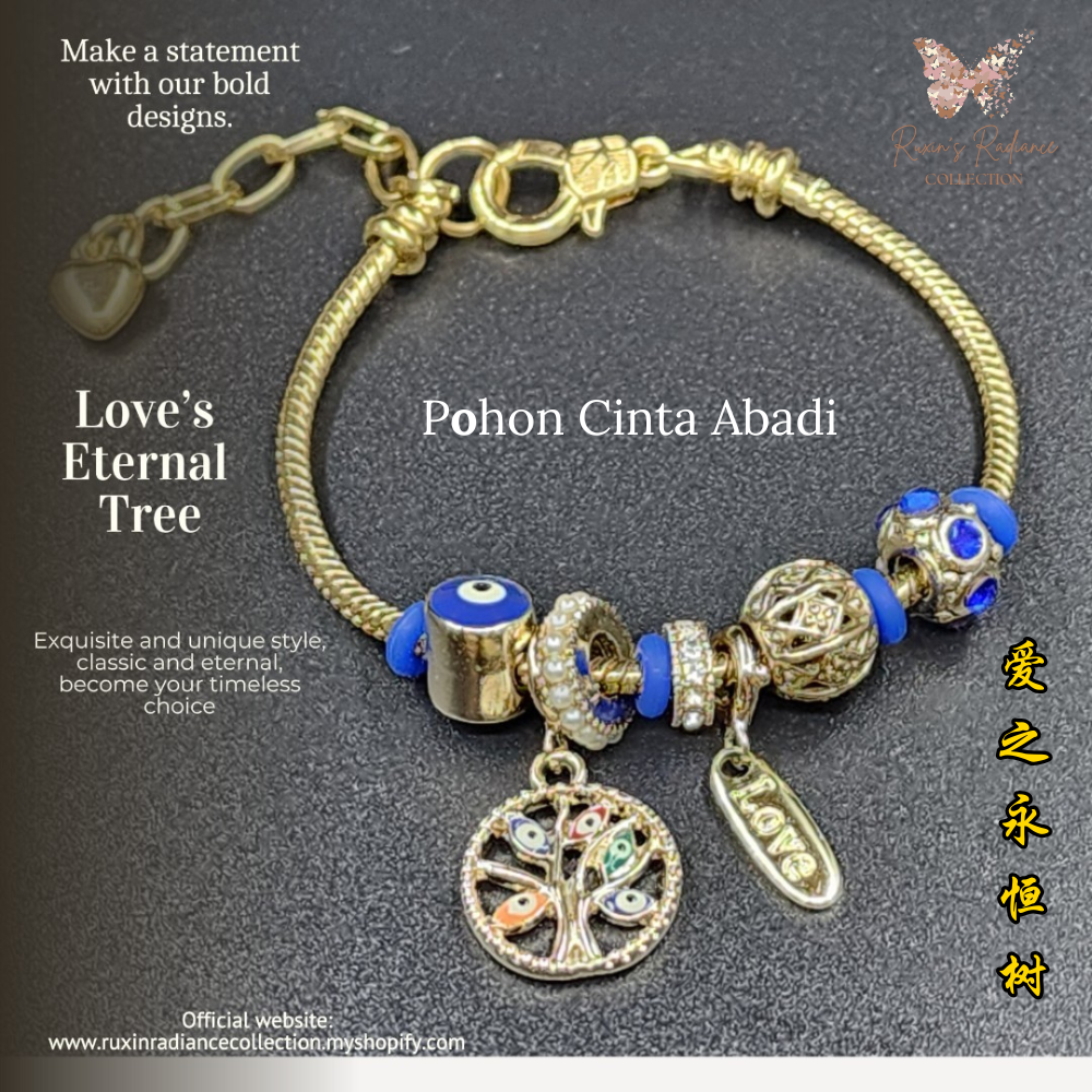 Ruxin Radiance Handmade Eternal Harmony Bracelet – Gold Blue Elegance 爱·永恒树守护链–金蓝永恒优雅 Gelang Abadi: Cinta & Harmoni – Elegan Emas/Biru