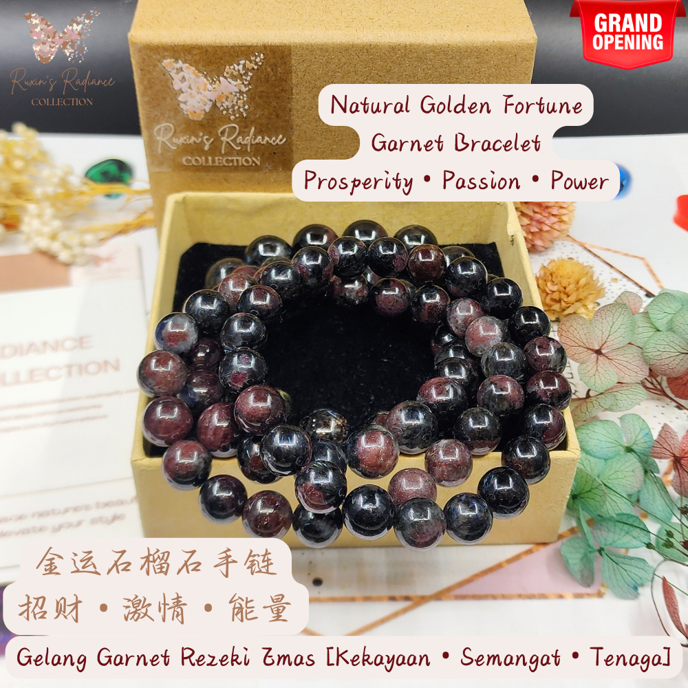 Golden Fortune Garnet Bracelet - Wealth & Protection金运石榴花手链-招财护身Gelang Garnet Nasib Emas - Kaya & Lindungan