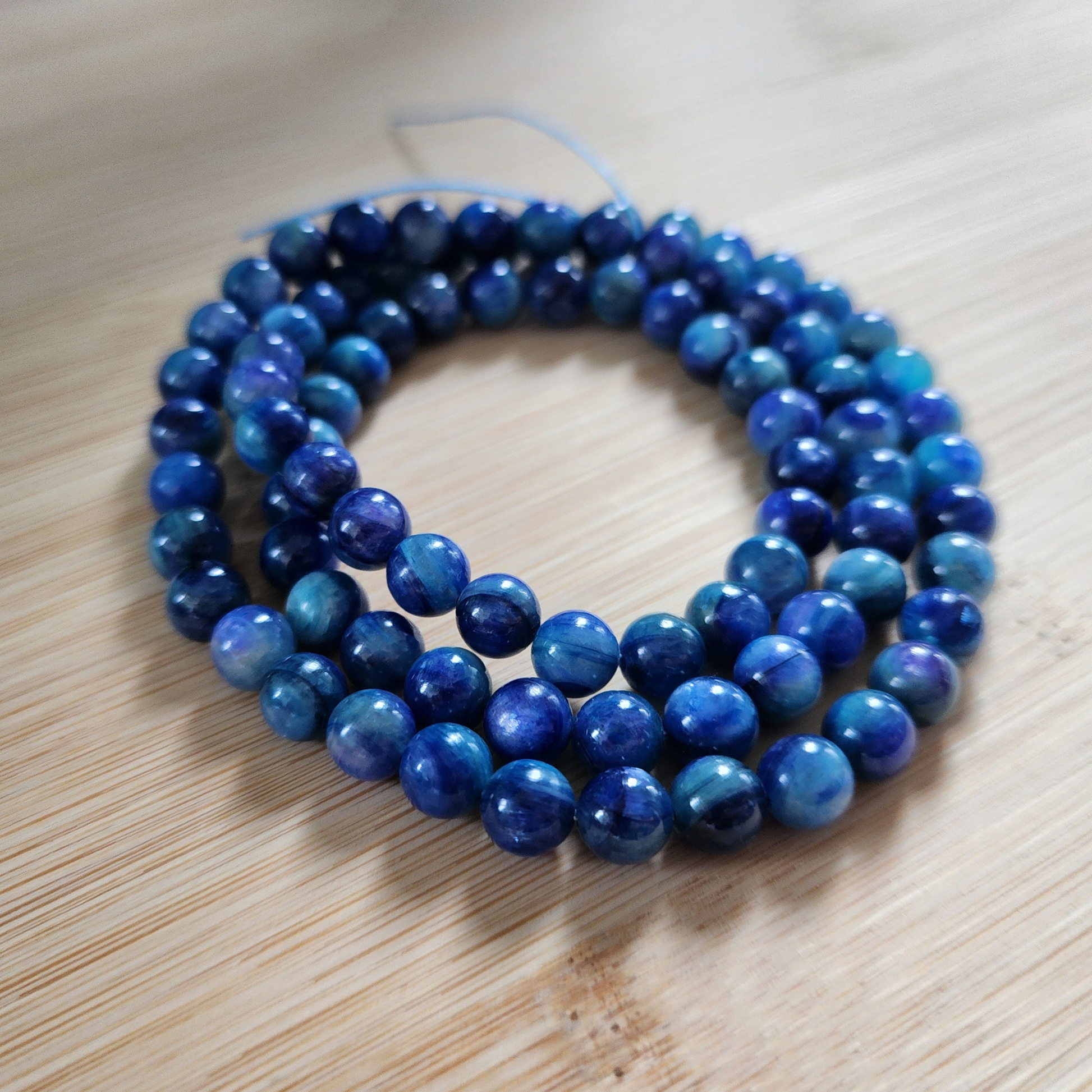 Rasai ketenangan dengan Gelang & Rantai Kyanite Tiga Lilitan Asli, diperbuat daripada kristal biru pekat yang membantu menyeimbangkan Chakra Tekak, meningkatkan fokus, dan membersihkan tenaga negatif.