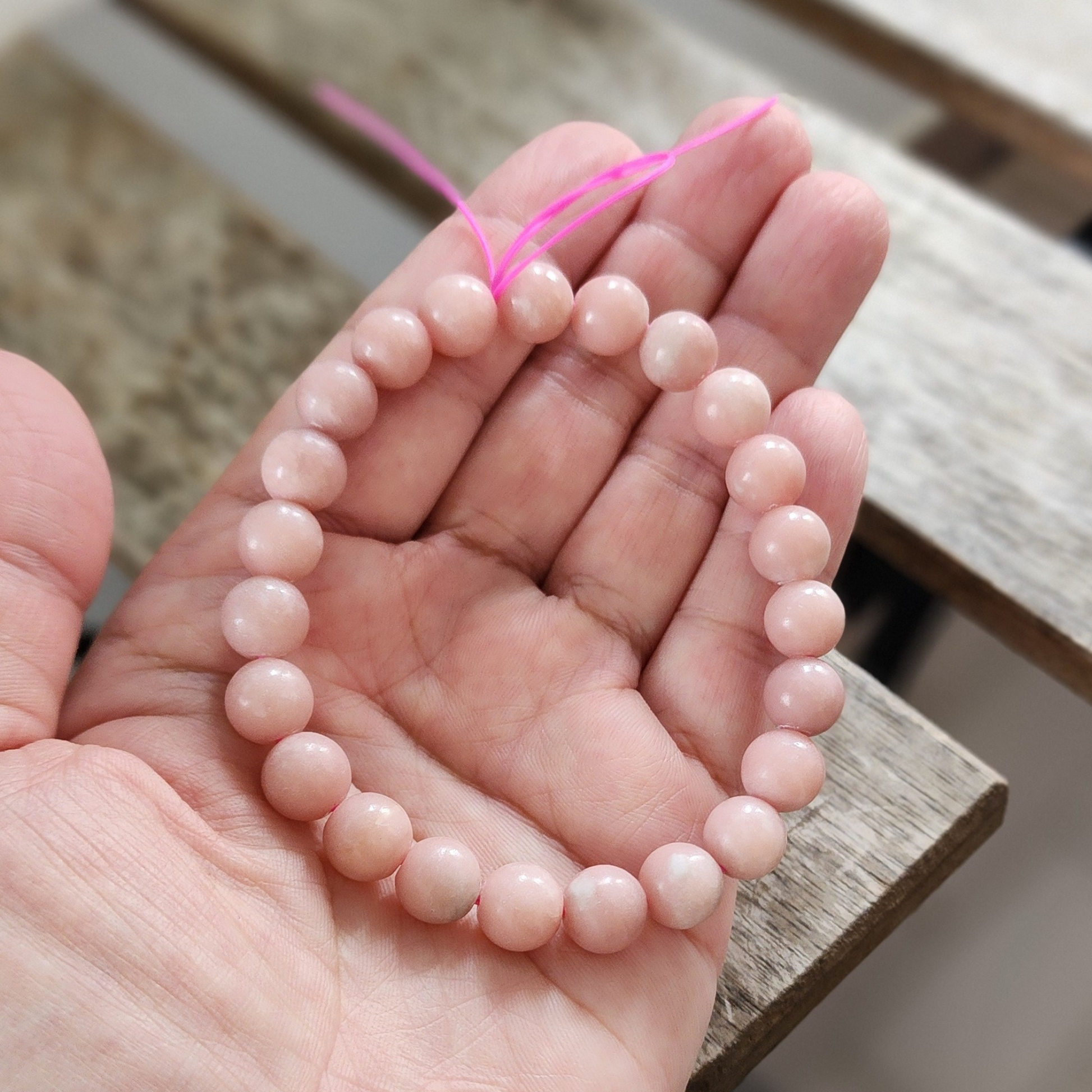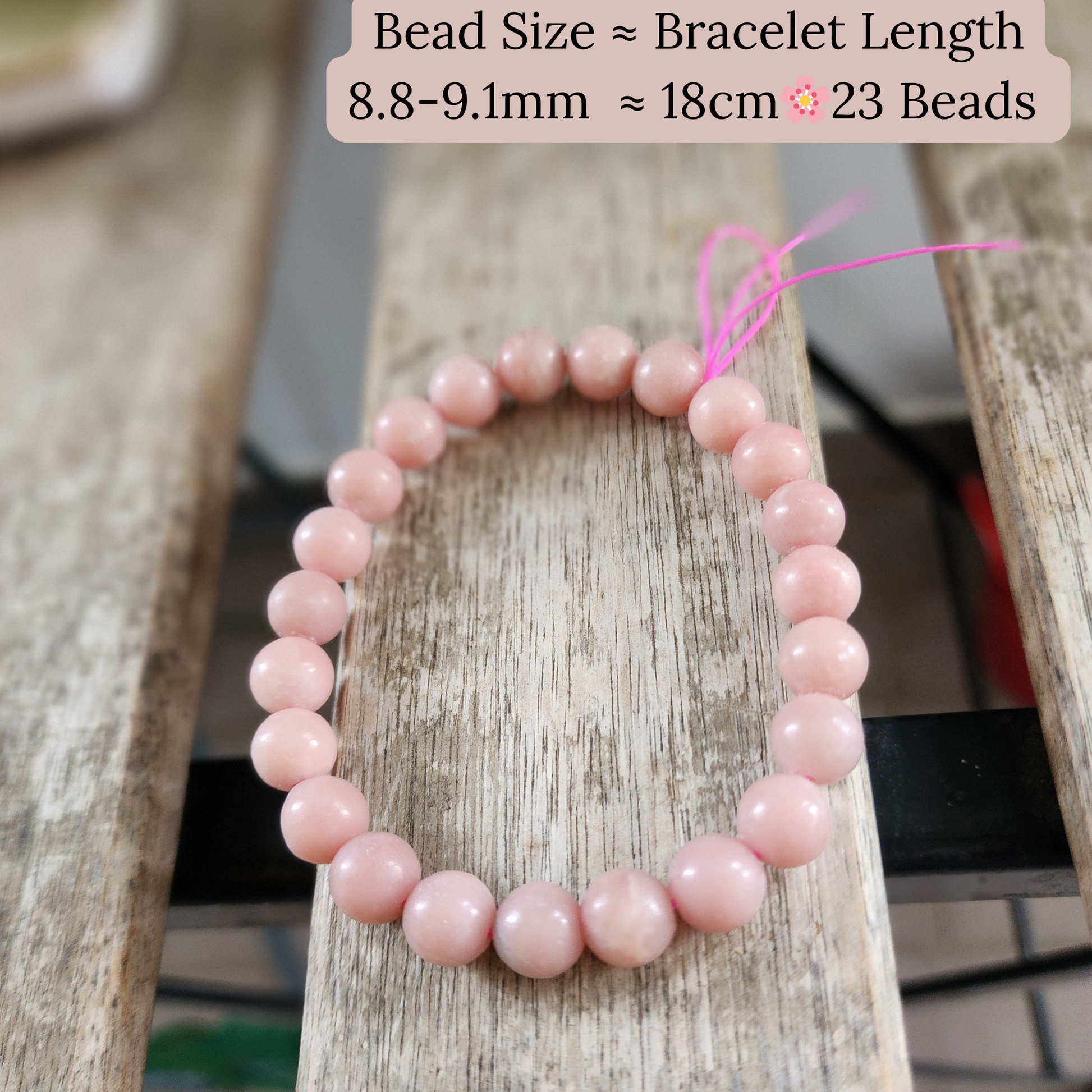 • Natural Pink Opal beads (8.8–9.1mm)