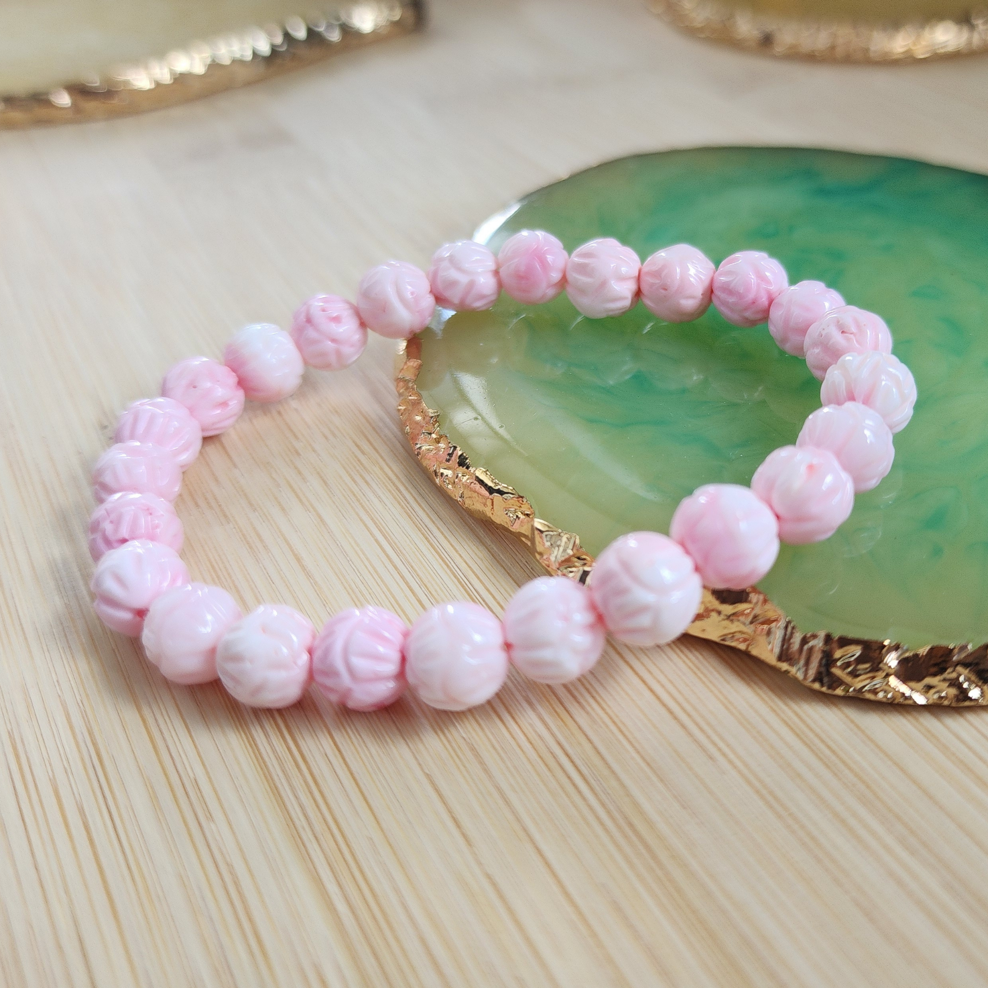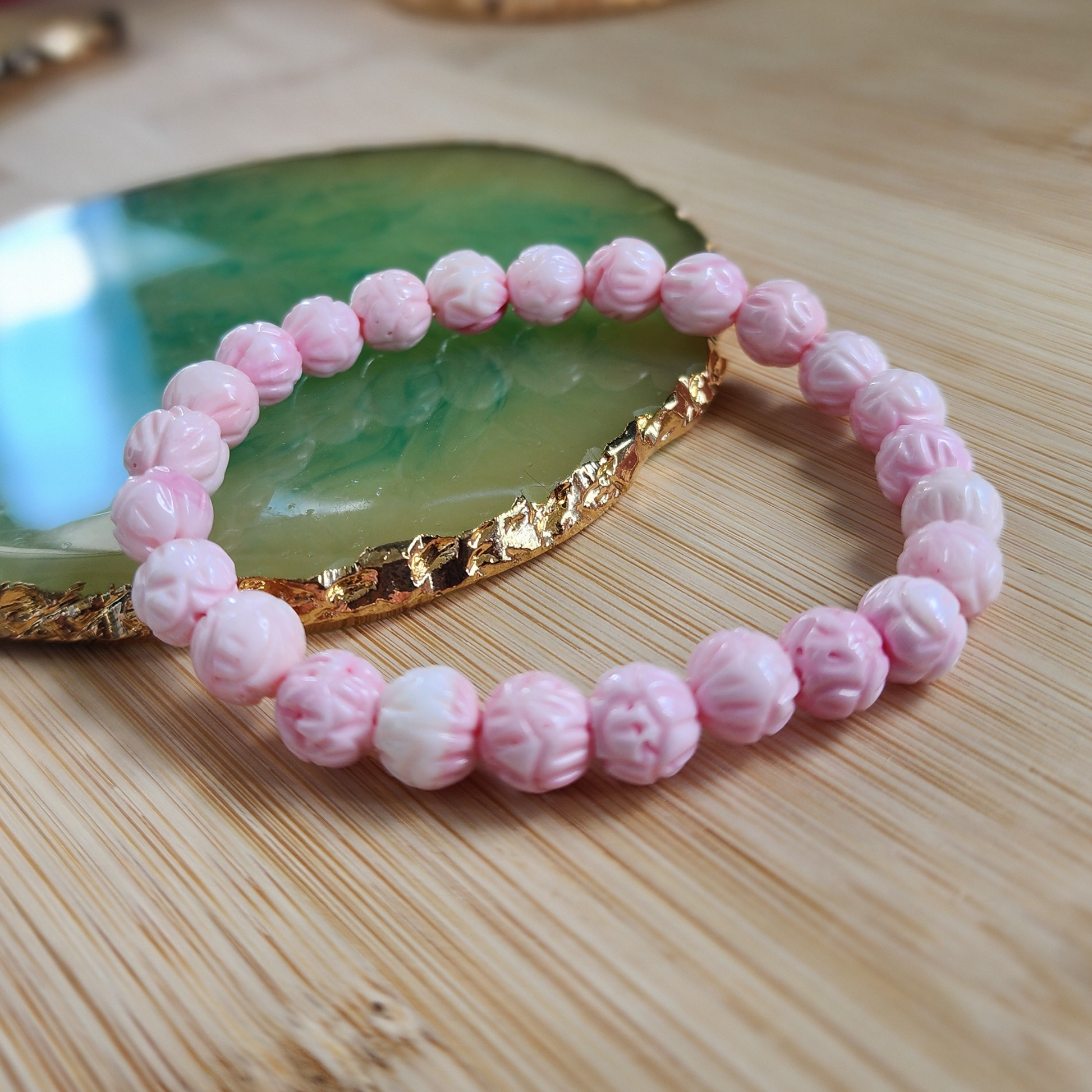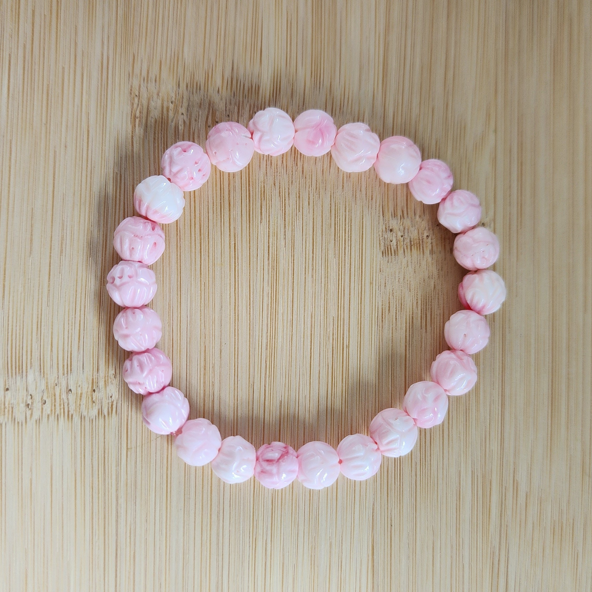 Natural Pink Queen Conch Floral Bracelet|Soft Gloss & Feminine Energy|Calming Shell Jewelry for Her|Gelang Corak Bunga Queen Conch Merah Jambu Asli|Ketenangan & Aura Feminin