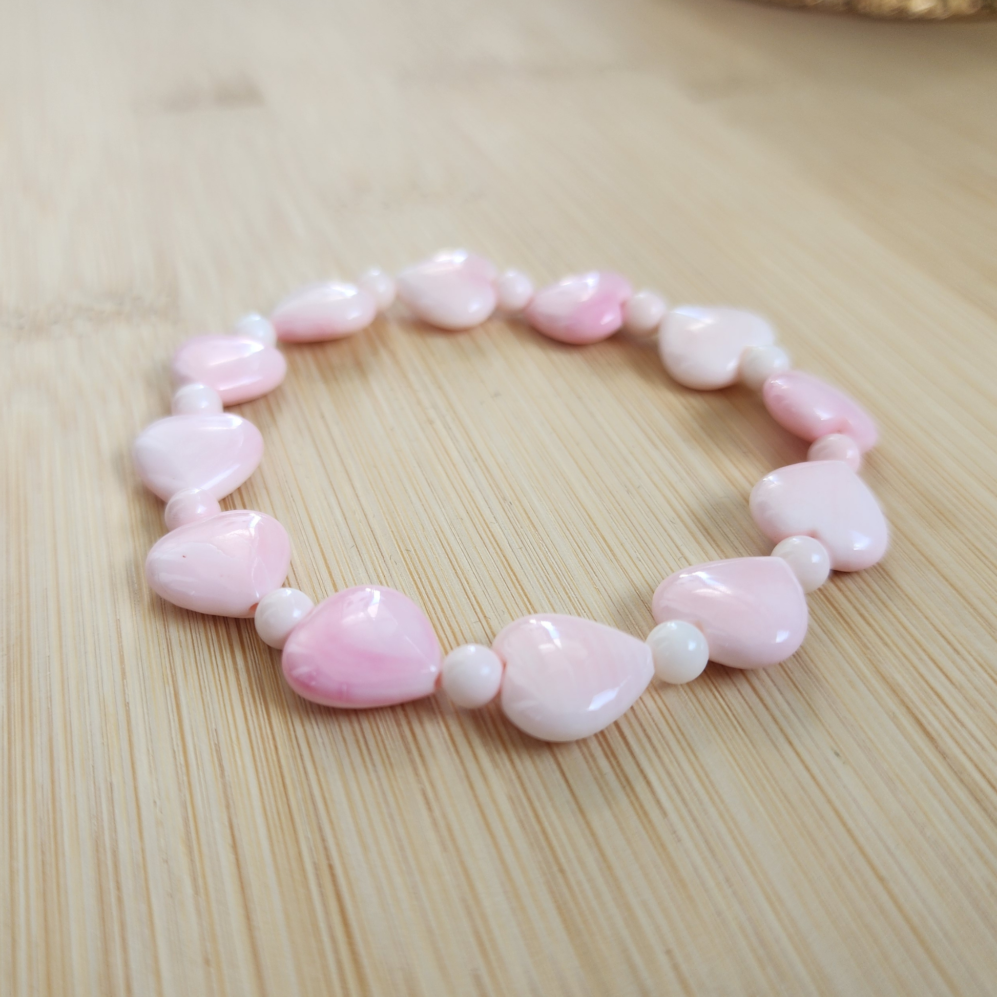 Natural Pink Queen Conch Heart Bracelet|Soft Gloss & Feminine Energy|Calming Shell Jewelry for Her|Gelang Queen Conch Pink Asli|Ketenangan & Aura Feminin
