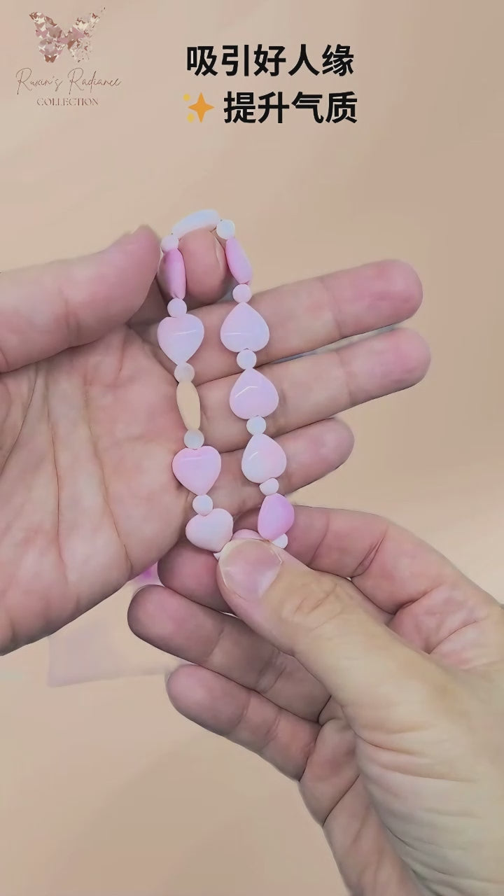The bracelet is strung with a comfortable handmade elastic cord, making it perfect for daily wear. Its natural glow and sweet, feminine design make it an ideal choice for gifting, self-love jewelry, or styling with your favorite outfits.