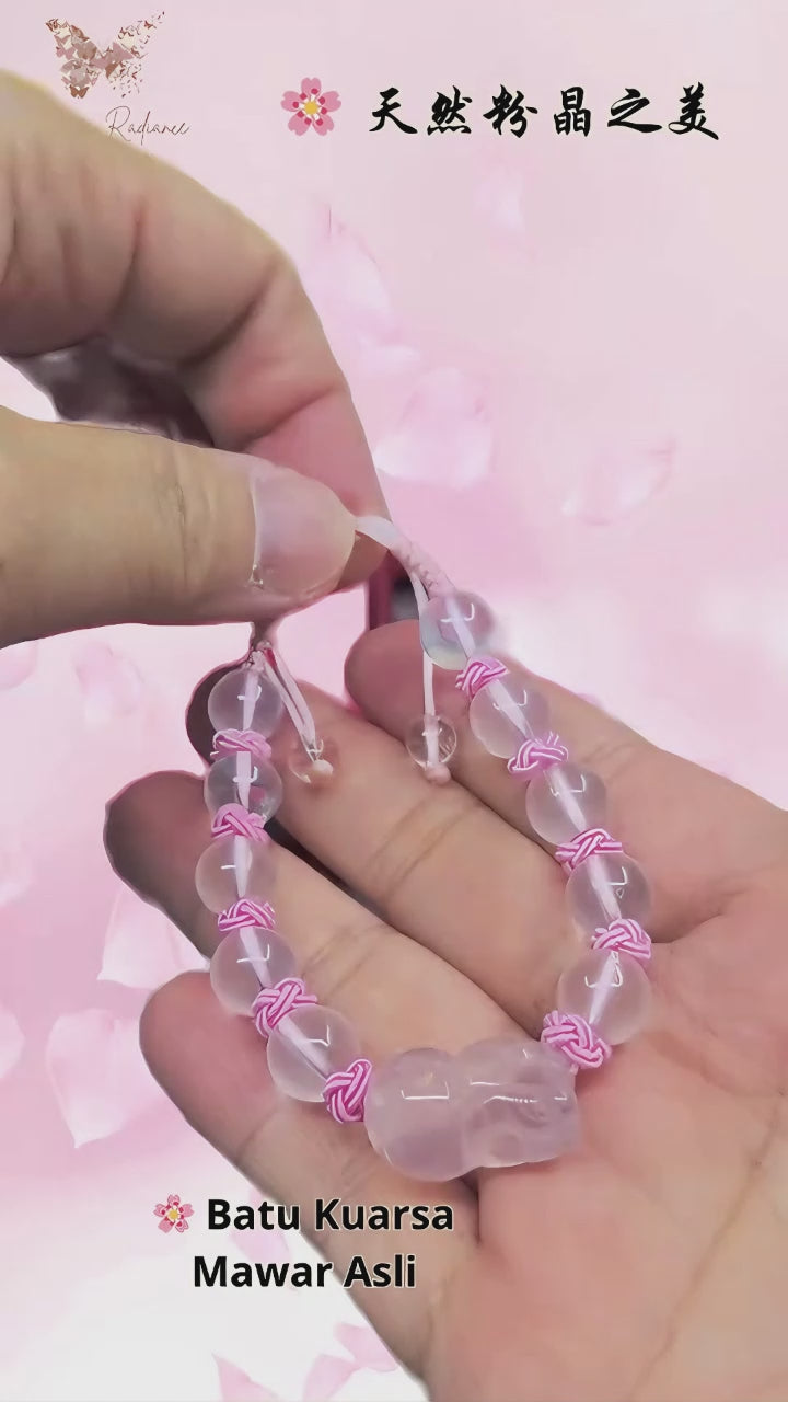 Ice-Grade Rose Quartz Pixiu Bracelet – Love & Healing Charm ‖ Gelang Rose Quartz Gred Ais Pixiu – Cinta & Penyembuhan