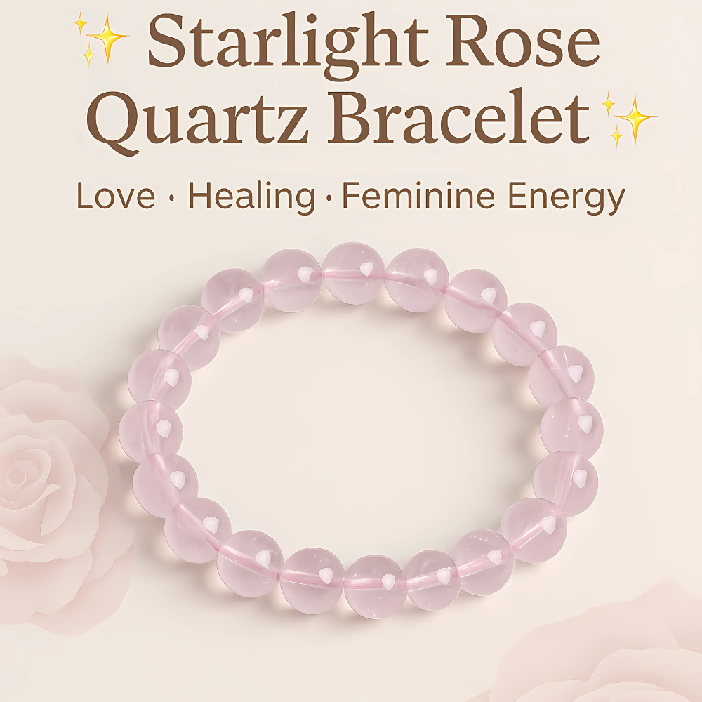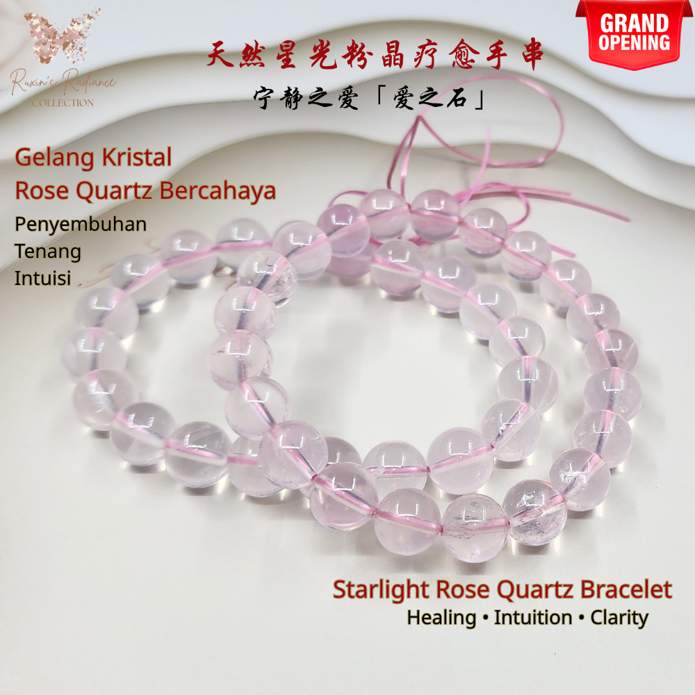 Starlight Rose Quartz Bracelet 天然星光粉晶手串 Gelang Kristal Rose Quartz Bercahaya | Love · 爱 · Cinta | Healing 能量 · Penyembuh