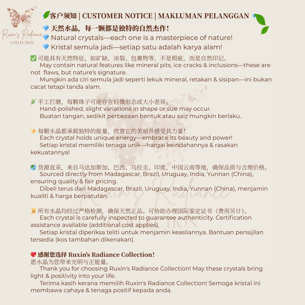 下单前请理解与欣赏天然水晶的独特与不完美之美。